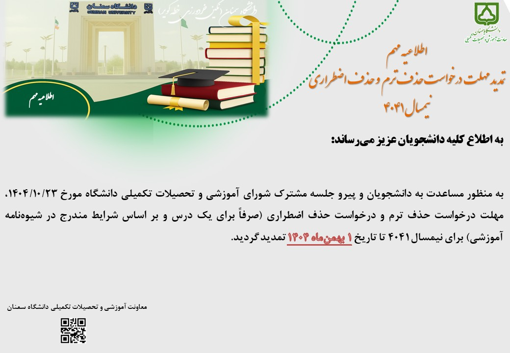 اطلاعیه تمدید مهلت درخواست حذف ترم و حذف اضطراری