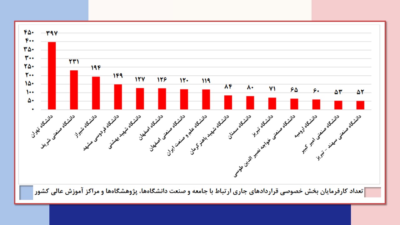 به گزارش روابط عمومی دانشگاه سمنان ؛ دکتر محمد حسین احسانی با اعلام این خبر گفت : بر اساس آخرین آمار منتشرشده، دانشگاه سمنان با ۲۴۴ قرارداد پژوهشی جاری موفق به کسب رتبه چهاردهم کشور در همکاری با صنعت شده است که این موفقیت حاصل تلاش پیگیرانه اعضای هیئت علمی و پژوهشگران دانشگاه در برقراری ارتباط مؤثر با صنایع و نهادهای اجرایی است.