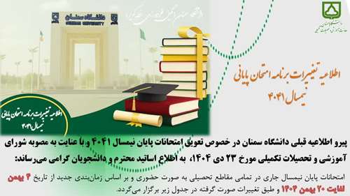 اطلاعیه تغییرات برنامه امتحان پایانی نیمسال ۴۰۴۱