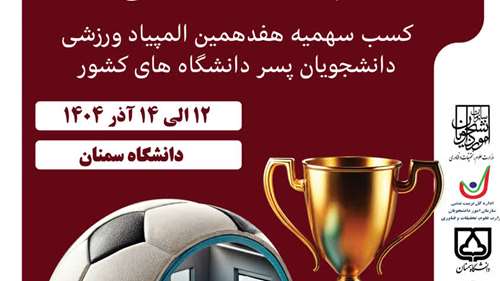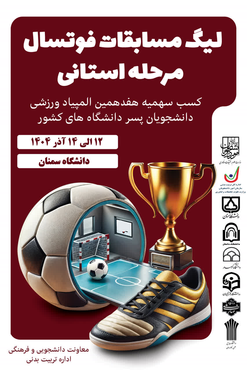 لیگ مسابقات فوتسال مرحله استانی دانشگاه‌های کشور از ۱۲ تا ۱۴ آذر به میزبانی دانشگاه سمنان برگزار می شود .