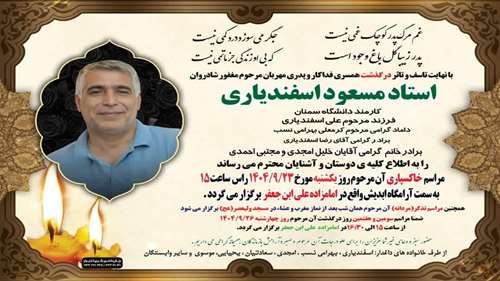 با کمال تاسف و تاثر مطلع شدیم همکار عزیزمان در دانشکده فیزیک دانشگاه ، جناب آقای مسعود اسفندیاری دار فانی را وداع گفته اند