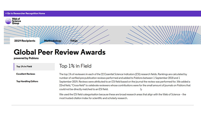 گفتنی است همزمان با هفته داوری همتا 16 تا 20 سپتامبر 2019، پابلونز اسامی 1% درصد داوران برتر جهان را در 22 فیلد تخصصی بر اساس ESI اعلام می نماید.