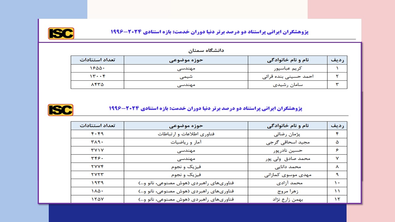 حضور 26 پژوهشگر دانشگاه سمنان در جمع دانشمندان پراستناد دو درصد برتر جهان