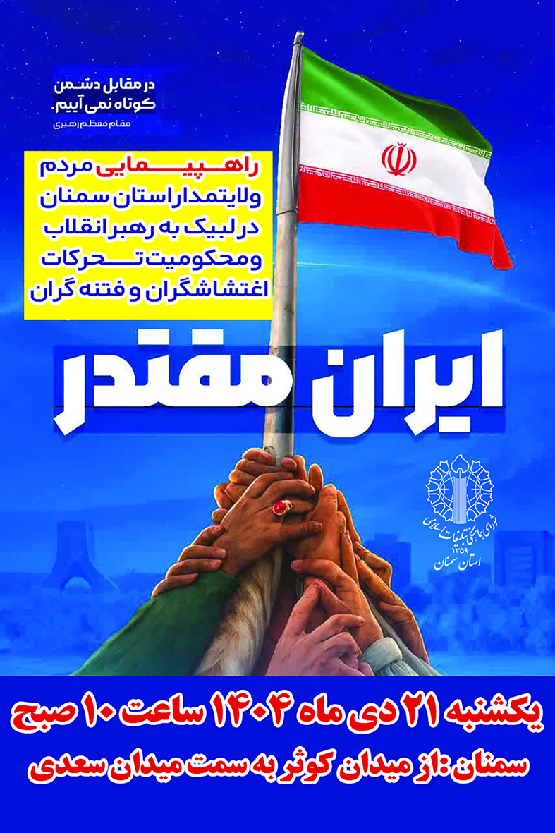 زمان و مکان راهپیمایی مردم استان سمنان در محکومیت تحرکات اغتشاشگران و فتنه گران در روز یکشنبه بیست و یکم دی ماه اعلام شد.