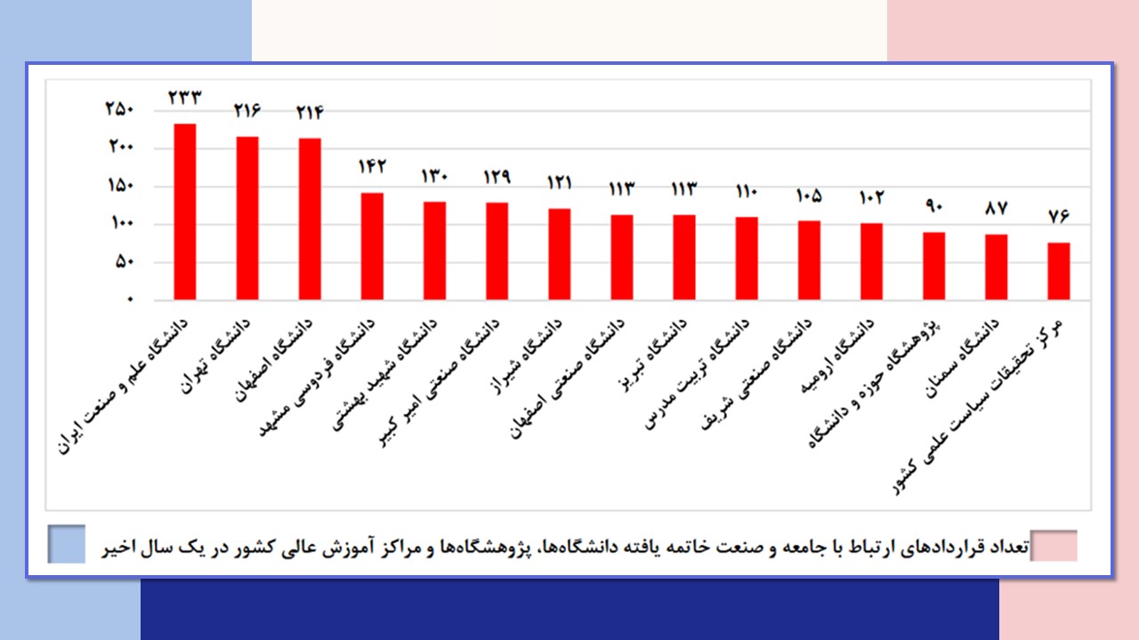 به گزارش روابط عمومی دانشگاه سمنان ؛ دکتر محمد حسین احسانی با اعلام این خبر گفت : بر اساس آخرین آمار منتشرشده، دانشگاه سمنان با ۲۴۴ قرارداد پژوهشی جاری موفق به کسب رتبه چهاردهم کشور در همکاری با صنعت شده است که این موفقیت حاصل تلاش پیگیرانه اعضای هیئت علمی و پژوهشگران دانشگاه در برقراری ارتباط مؤثر با صنایع و نهادهای اجرایی است.