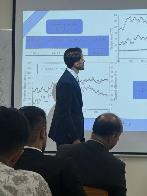 وقال الدکتور آلبویه حول الرسالة المقدمة: "تناولت هذه الرسالة دراسة واختبار سعة وإمکانیة تخزین الطاقة الحراریة الشمسیة واستخدامها فی ساعات الغروب واللیل عندما لا یمکن استخدام الطاقة الشمسیة."