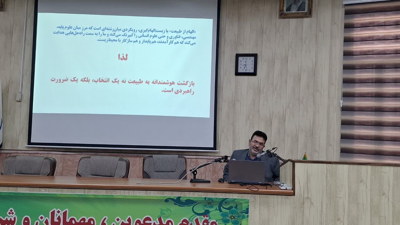 به گزارش روابط عمومی دانشگاه سمنان ؛ دکتر محمد حسین احسانی معاون پژوهش و فناوری دانشگاه سمنان در این رویداد به تشریح اهمیت توسعه فناوریهای طبیعت بنیان در مسیر تحقق اقتصاد دانشبنیان و نیز ظرفیتهای علمی دانشگاه سمنان در حوزههای میانرشتهای، پرداخت و بر لزوم بهرهگیری از الگوهای طبیعی در طراحی فناوریهای نو و مدلسازی صنعتی تأکید کرد.