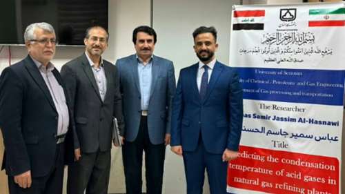 به گزارش روابط عمومی دانشگاه سمنان ؛  رئیس دانشکده مهندسی شیمی، نفت و گاز دانشگاه سمنان با اعلام این خبر گفت: عباس سمیر جاسم حسناوی از کشور عراق به عنوان نخستین دانشجوی بین الملل این دانشکده موفق شد از پایان نامه خود با عنوان "پیش بینی درجه حرارت تشکیل میعانات گازهای اسیدی در مجتمع های پالایشی گاز طبیعی" به راهنمایی دکتر بهمن زارع نژاد دفاع کند.