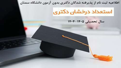 اطلاعیه ثبت‌نام از پذیرفته‌شدگان دکتری بدون آزمون دانشگاه سمنان در سال تحصیلی 1405 1404